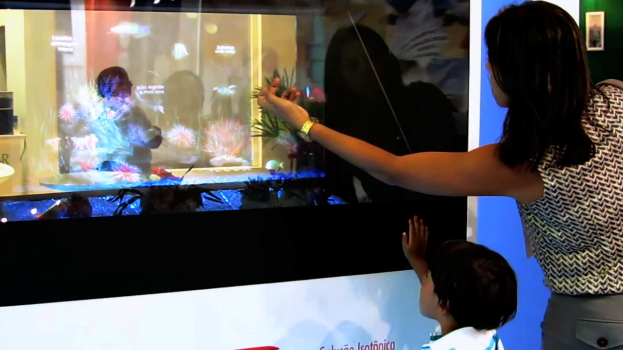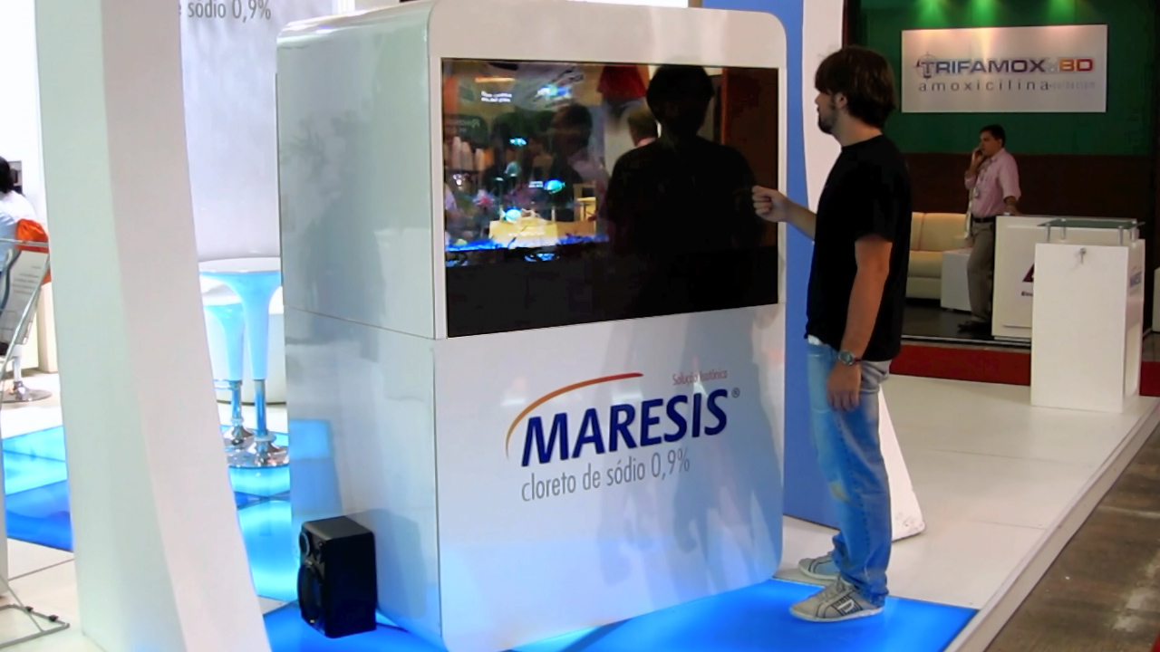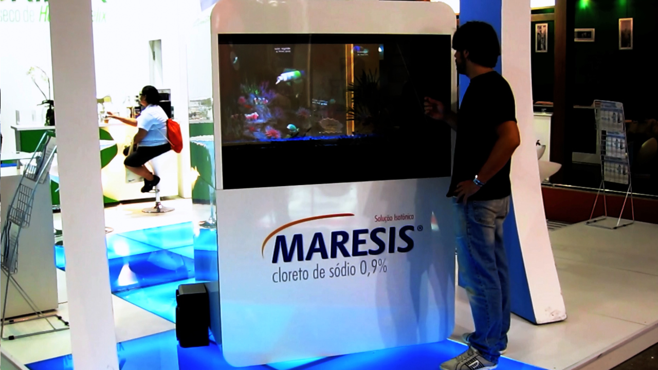 O Aquário Holográfico com sistema de reconhecimento de toque foi desenvolvido pela Fictix para a empresa Farmoquímica. A idéia foi trazer inovação e interatividade para o lançamento do produto Maresis, reforçando as características do produto e gerando uma experiência diferenciada aos visitantes.