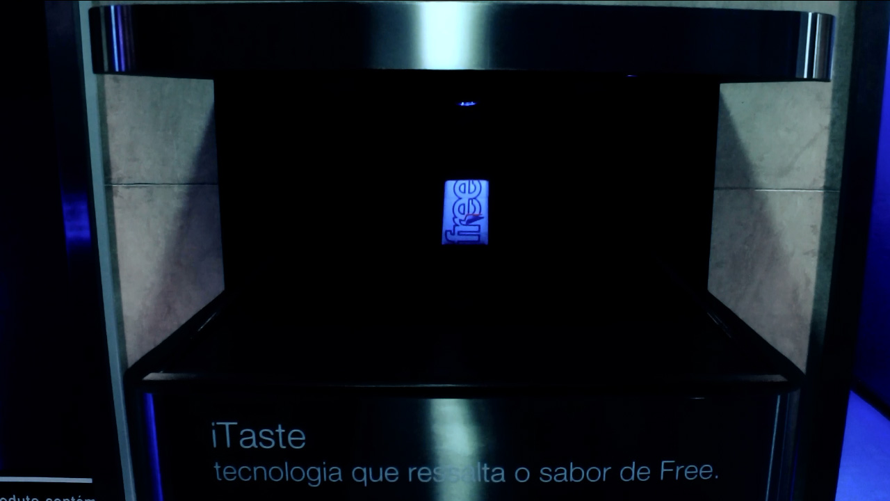 Sistema holográfico desenvolvido pela Fictix para o lançamento do Free ITaste pela Souza Cruz. O objetivo foi associar ao produto conceitos como inovação, sofisticação e impacto, gerando efeito de flutuação e movimento.