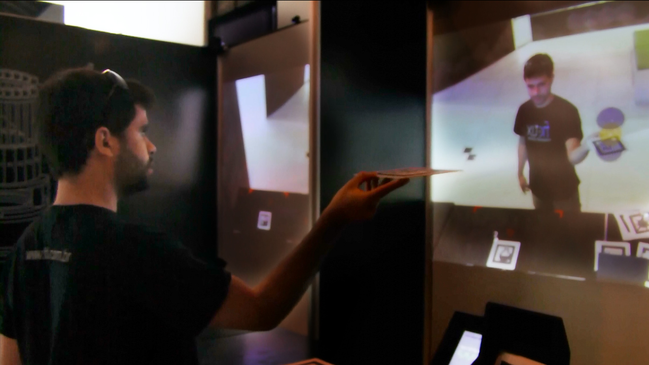 Solução “Reações Químicas em Realidade Aumentada” desenvolvida pela Fictix para a exposição “Elementar: a química que faz o mundo”, lançada pelo Museu da Vida-Fiocruz. A solução permite que o usuário junte/reaja átomos em 3D e forme (ou não) moléculas químicas existentes no cotidiano. Caso haja a formação de moléculas, sua estrutura é visualizada “no ar” e informações sobre o produto da reação são veiculadas na tela.