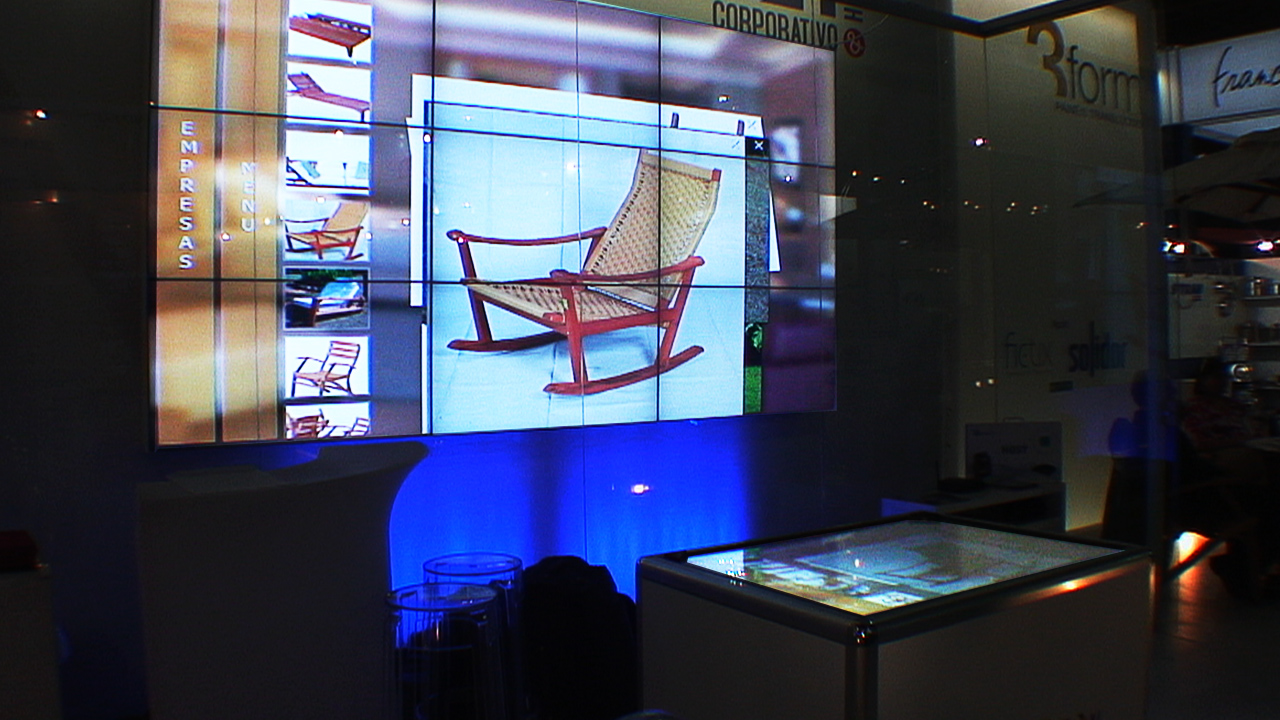 Mesa interativa desenvolvida de forma personalizada para a Contract, empresa focada no desenvolvimento de soluções para o mercado hoteleiro. Formada por uma mesa multitouch acoplada a um painel informativo de grande porte, a estação serviu como principal ferramenta de venda, demonstração de portfólio (layouts, fotos, textos) e encantamento dos visitantes.