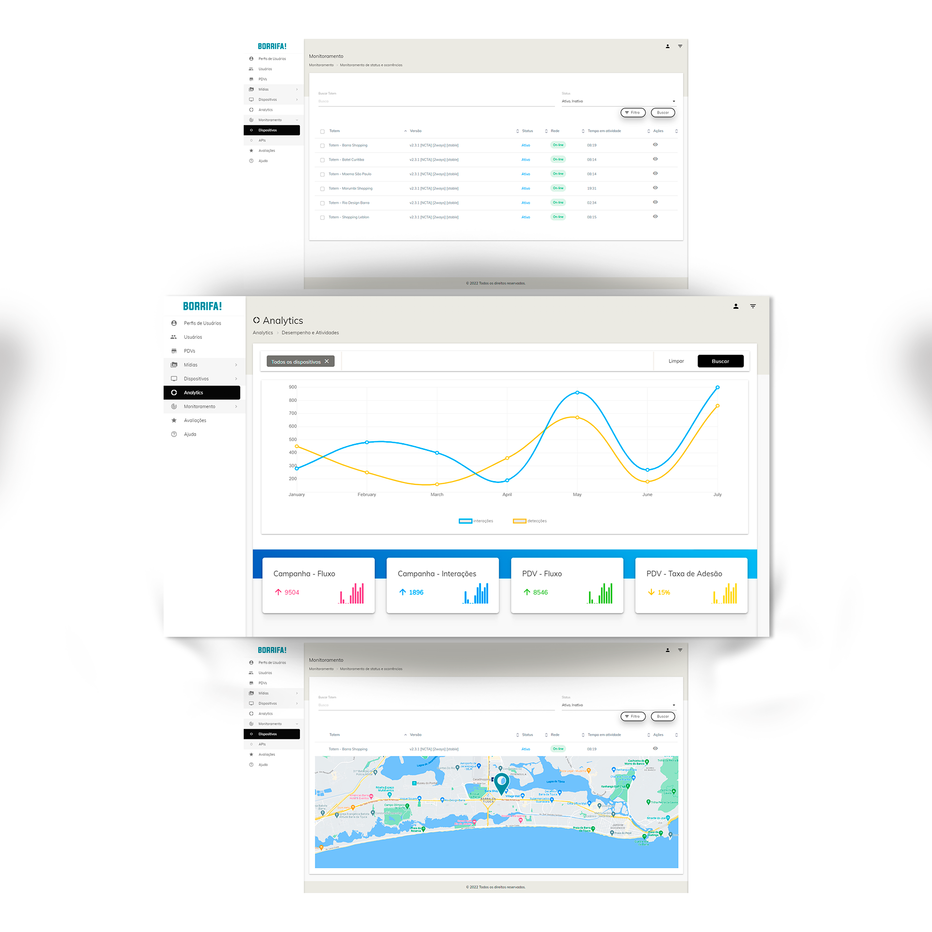O Borrifa! vai muito além de uma experiência momentânea na loja, ele conta com uma plataforma completa de apoio ao planejamento, gerenciamento e monitoramento da campanha.