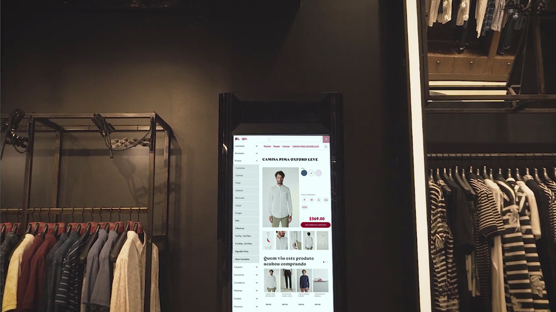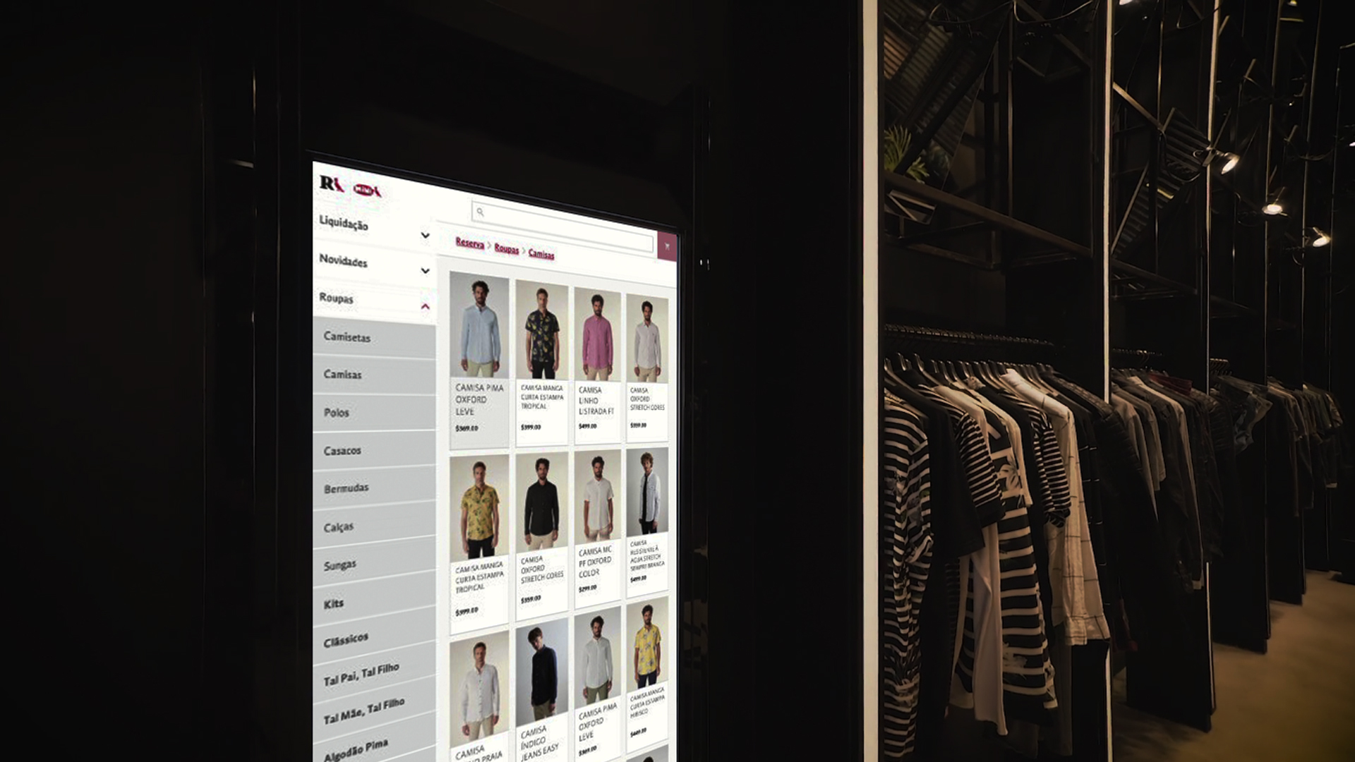 A marca implementou totens touch screen em 30 lojas com a solução E-com para que seus clientes interajam plenamente com seus produtos, reduzindo a distância entre o canal on-line e o ambiente físico da loja.