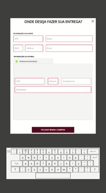 O cliente acessa todo o portfólio da marca no tótem. Visualiza fotos, descrição, disponibilidade, lançamentos, promoções e recomendações. Adiciona os produtos que deseja ao carrinho e seleciona se receberá em casa ou se irá retirar na própria loja.