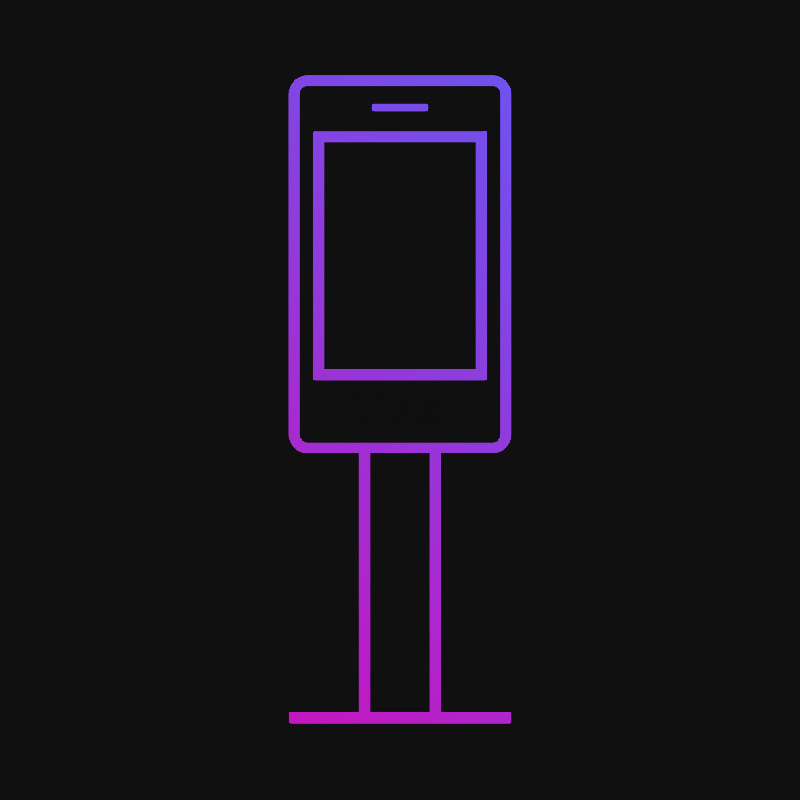 O cliente tem a experiência de compra com o sistema através de uma mídia física, que pode ser um tótem ou um tablet.